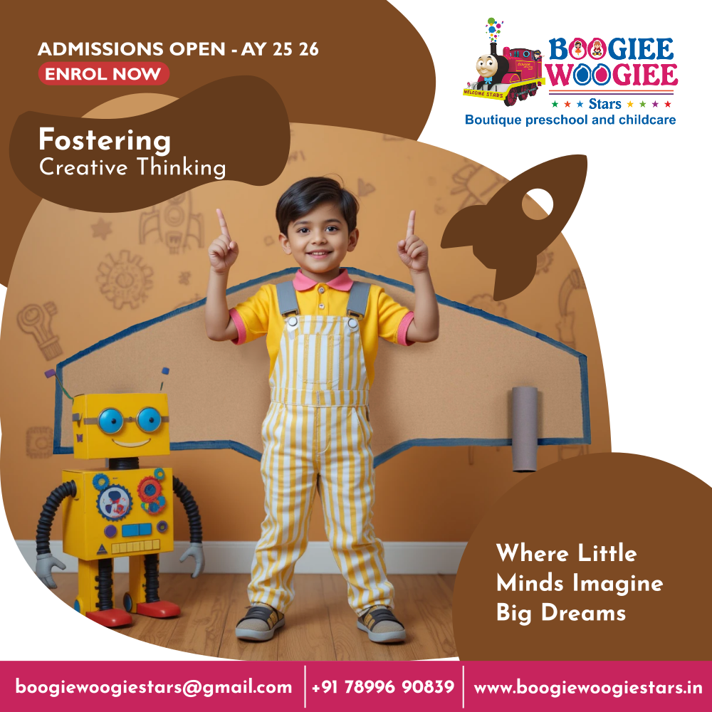 At Boogiee Woogiee Preschool, we understand that creativity is a mindset that develops through encouragement, exploration, and the freedom to imagine. Every interaction, activity, and experience at our preschool is designed to nurture this ability in young minds.