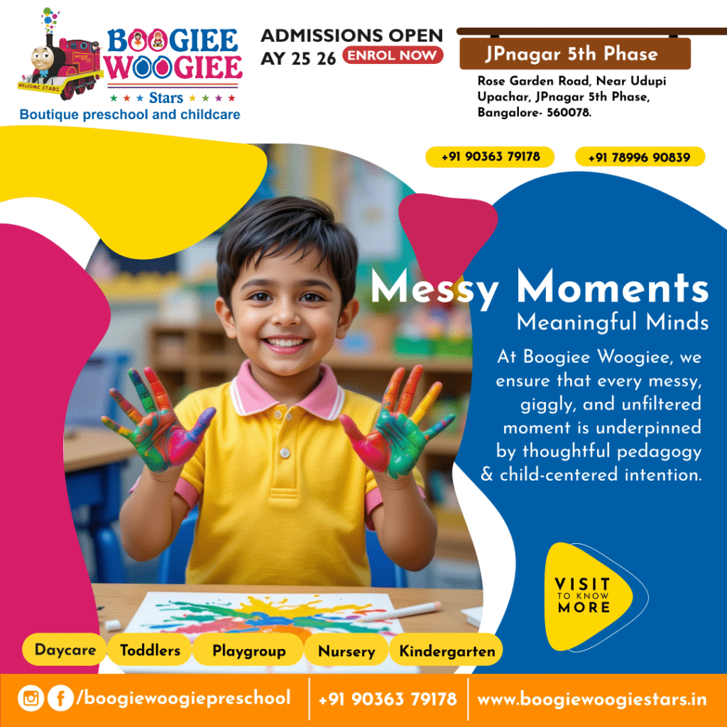 If you’re seeking a preschool where your child’s natural curiosity is nurtured, where learning feels like play and play leads to learning, we invite you to explore Boogiee Woogiee Preschool in Doddakammanahalli. Here, mess is magic, and every giggle, splash, and question is a step toward a lifelong love of learning.