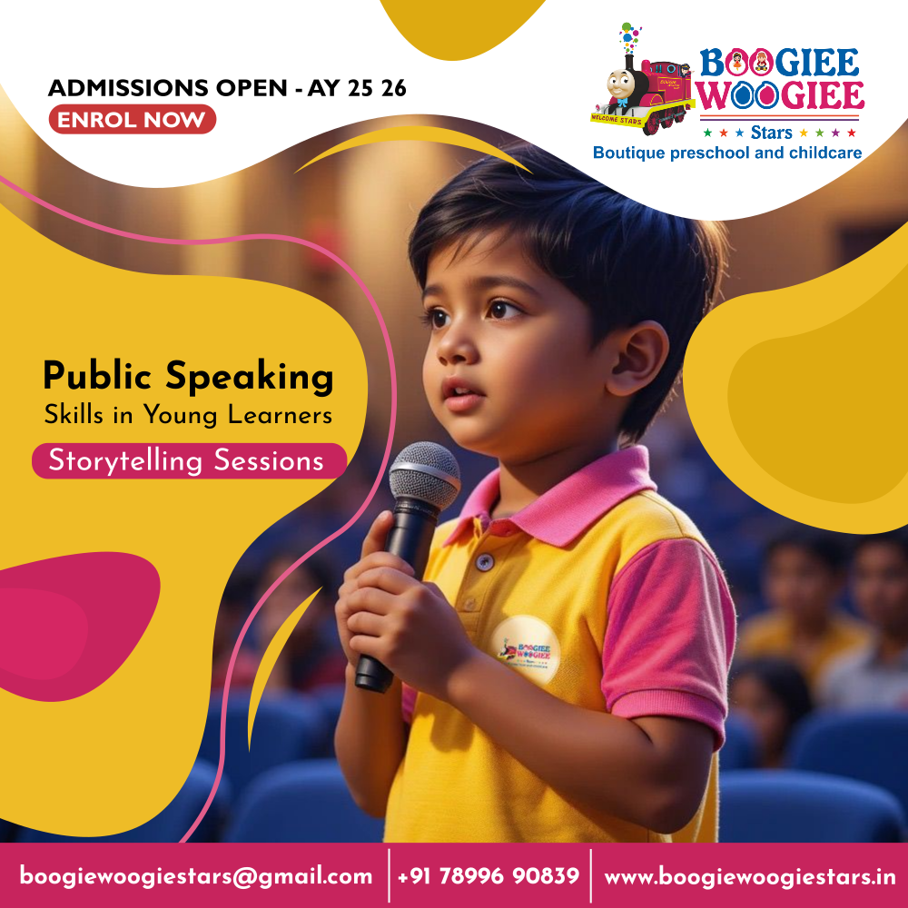 At Boogiee Woogiee Stars Preschool, we understand that early childhood is a crucial period for cognitive and social development. Introducing public speaking in a nurturing environment not only boosts self-confidence but also enhances language proficiency, critical thinking, and creativity. These skills lay a solid foundation for children to articulate their thoughts effectively, participate actively in group activities, and build meaningful relationships with peers and adults alike.
