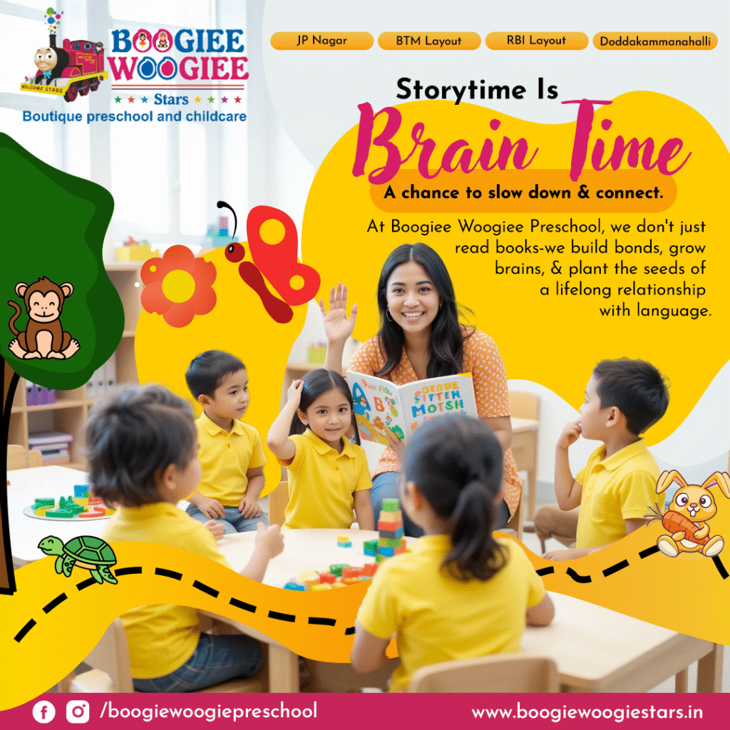 At Boogiee Woogiee Preschool, a premier preschool chain located in JP Nagar, we treat storytime as far more than just a pleasant daily routine. For us, it’s one of the most powerful moments of the day-a space where imagination meets language, and connection becomes the foundation for cognition. In today’s fast-paced, screen-filled world, the simple act of reading aloud holds a depth of impact that continues to grow in significance.