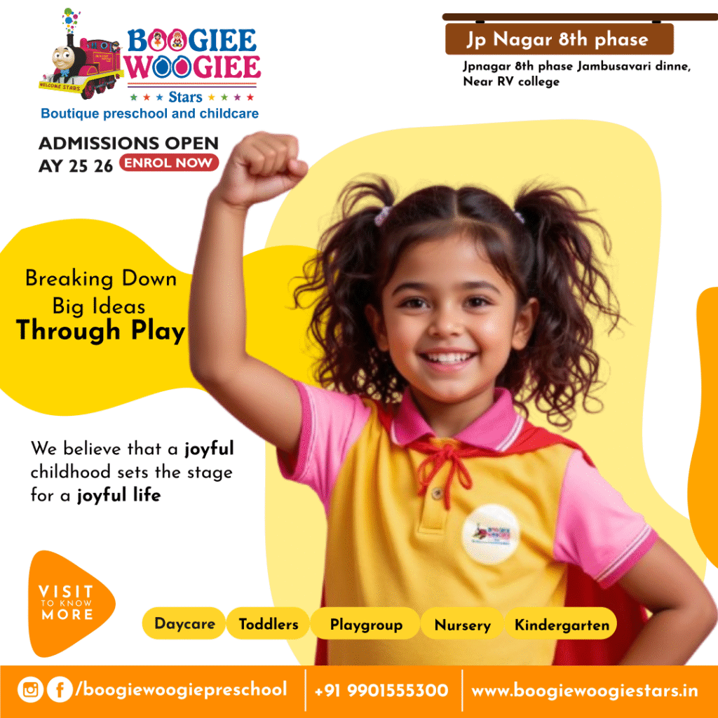 When you choose Boogiee Woogiee Preschool, JP Nagar, you are choosing a place where your child’s laughter is valued as much as their academic progress. You are choosing a school that understands that the best learning happens when children feel happy, connected, and free to be themselves.